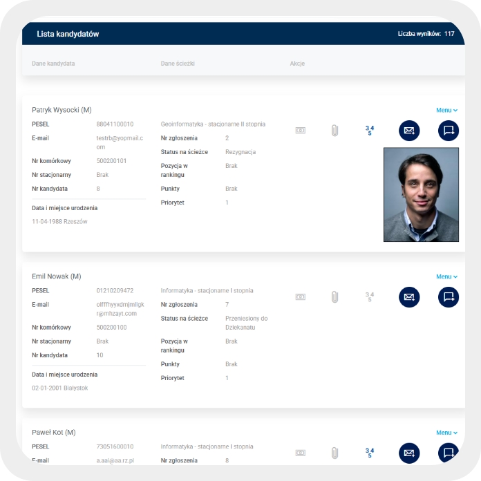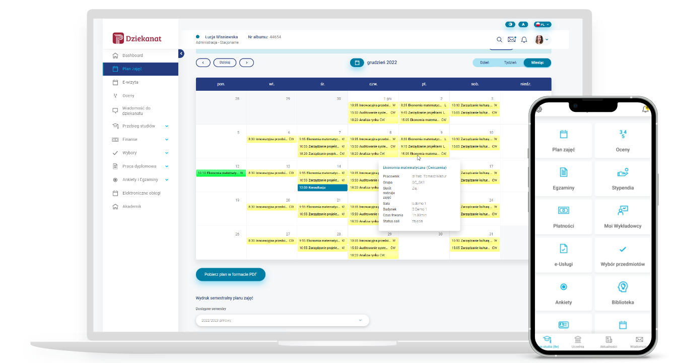 PCG Dziekanat to kompleksowy system informatyczny do zarządzania całym cyklem życia studenta – od rekrutacji, przez tok studiów i dydaktykę, aż po relacje z absolwentami. Zapewnia uczelni spójność danych, zgodność z przepisami oraz pełną cyfryzację procesów dydaktycznych.