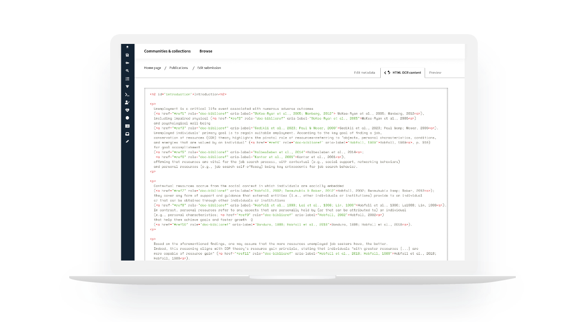 • AI accessibility tools provide accurate OCR, semantic headings, alternative text for images and generated audio summaries, and enable voice queries, semantic navigation and context-aware descriptions of figures and tables. This enables independent discovery, understanding and reuse of scholarly content.