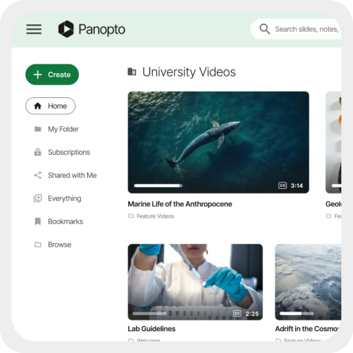 Panopto ułatwia wykładowcom szybkie przygotowanie angażujących treści, a instytucji daje pełną kontrolę nad zasobami wideo, ich organizacją i dostępnością. Porządkuje rosnące biblioteki nagrań i zapewnia spójny standard wideo w całej uczelni, zwiększając dostępność i jakość kształcenia.