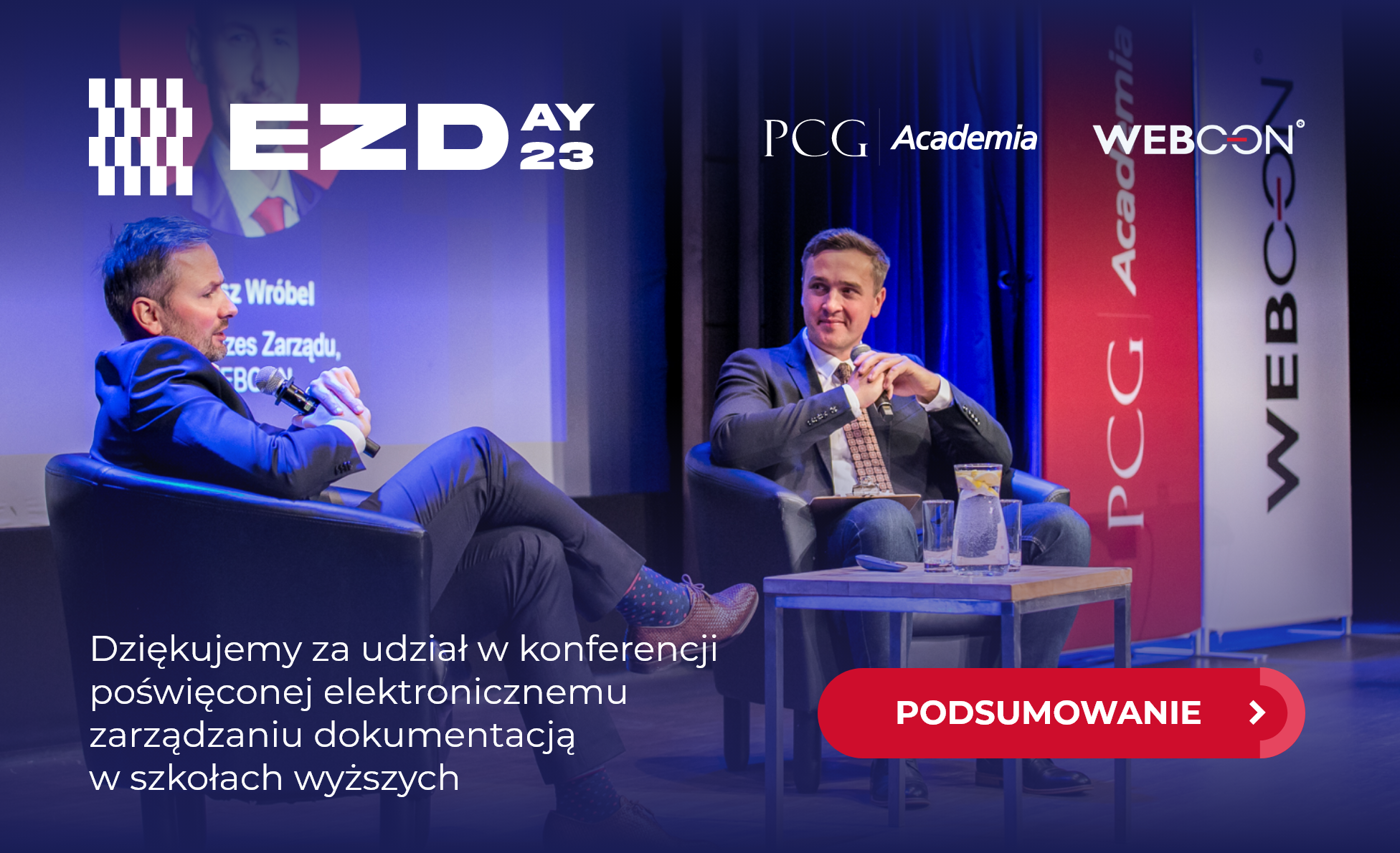 Konferencję rozpoczęło wspólne wystąpienie organizatorów: Łukasza Wróbla, Wiceprezesa WEBCON oraz Łukasza Nowaka, Wiceprezesa PCG Academia. Podczas prezentacji przybliżyliśmy nasze strategiczne partnerstwo, przedstawiliśmy najważniejsze osiągnięcia oraz opowiedzieliśmy o wspólnych planach na dalszy rozwój usług dla rynku edukacyjnego.