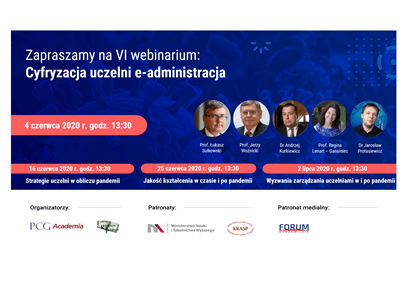 Naszym celem jest, aby dzięki webinariom władze szkół wyższych uzyskały wsparcie w podejmowaniu decyzji o strategicznym znaczeniu dla sprawnego funkcjonowania uczelni w zupełnie nowej rzeczywistości.
