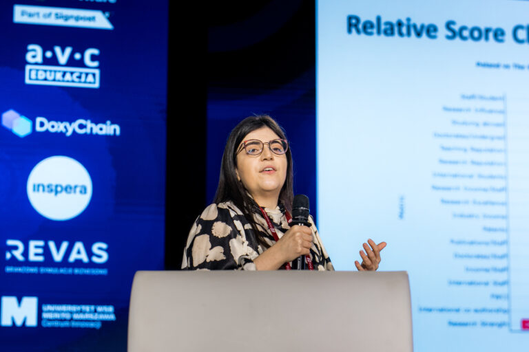 Pierwszy dzień konferencji uwieńczyła uroczysta Gala wręczenia nagród dla liderów polskich uczelni sklasyfikowanych w THE World University Rankings 2026 – najnowszej edycji najbardziej prestiżowego i rozpoznawalnego rankingu szkół wyższych na świecie. Nagrody wręczyła Rosie Sanniti, Regional Director for Europe w Times Higher Education wraz z Prof. Łukaszem Sułkowskim i Prof. Jerzym Woźnickim.