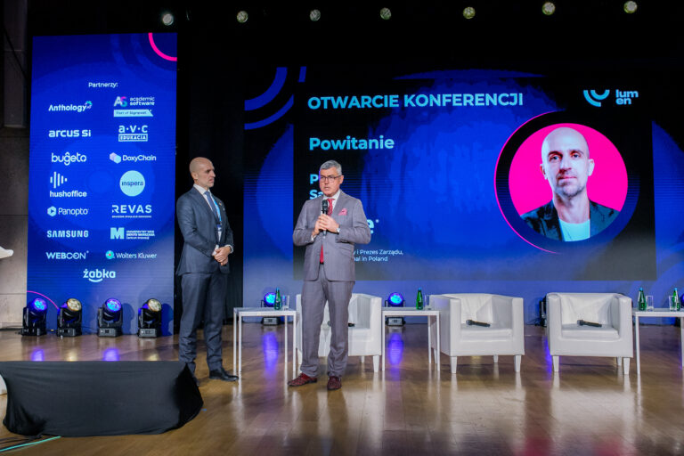 Partnerami LUMEN 2025 byli Anthology, Academic Software, Arcus SI, AVC Edukacja, Bugeto, DoxyChain, Hushoffice, Inspera, Panopto, Revas, Samsung, Uniwersytet WSB Merito Warszawa, WEBCON, Wolters Kluwer oraz Żabka.