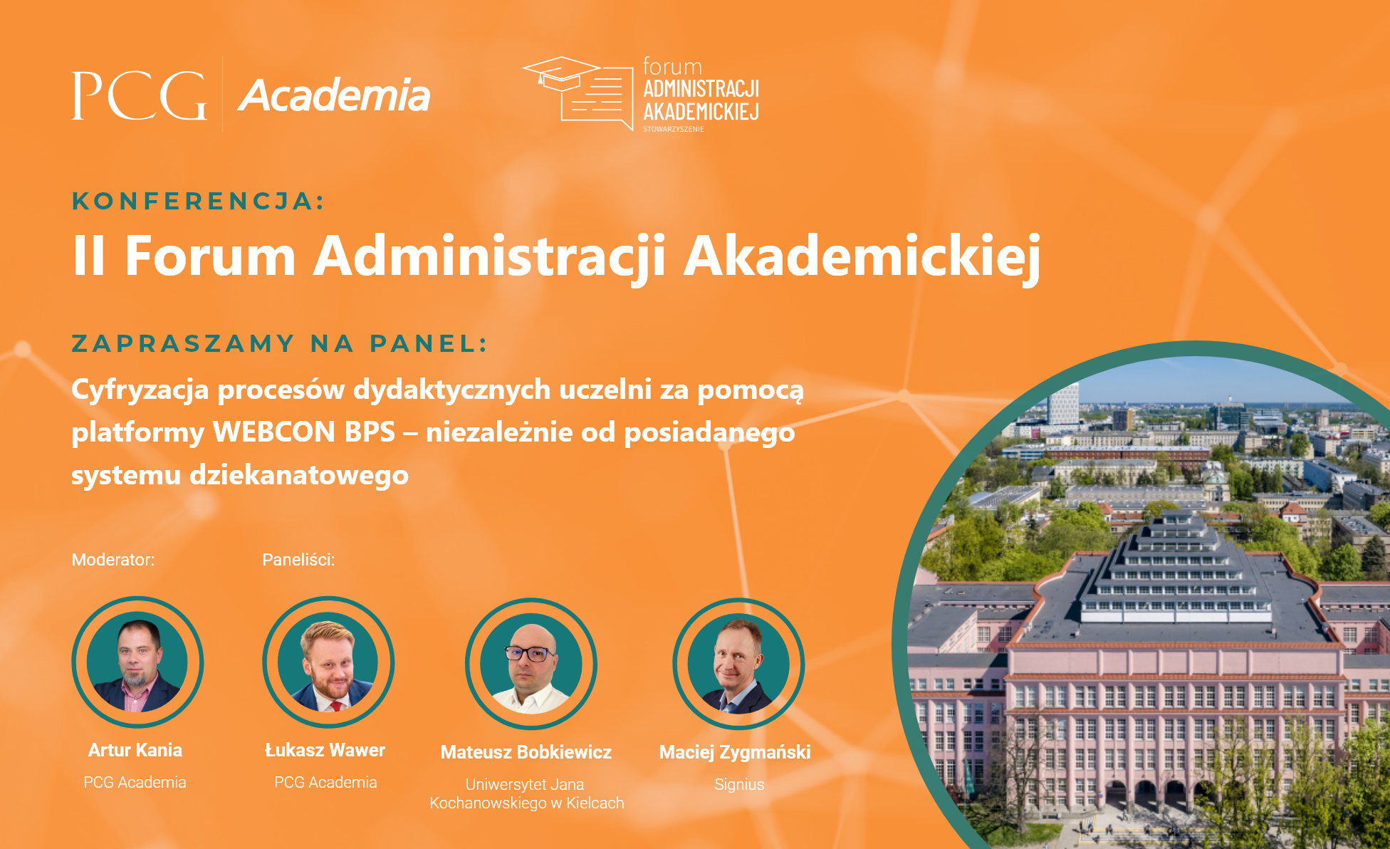 Podczas drugiego dnia konferencji PCG Academia będzie miała dla Was specjalne wystąpienie pt. Cyfryzacja procesów dydaktycznych uczelni za pomocą platformy WEBCON BPS – niezależnie od posiadanego systemu dziekanatowego. Tak, dobrze przeczytaliście: WEBCON BPS umożliwia efektywny elektroniczny obieg dokumentów i digitalizację procesów bez względu na to, z jakiego systemu dziekanatowego korzystacie na Waszej uczelni.
