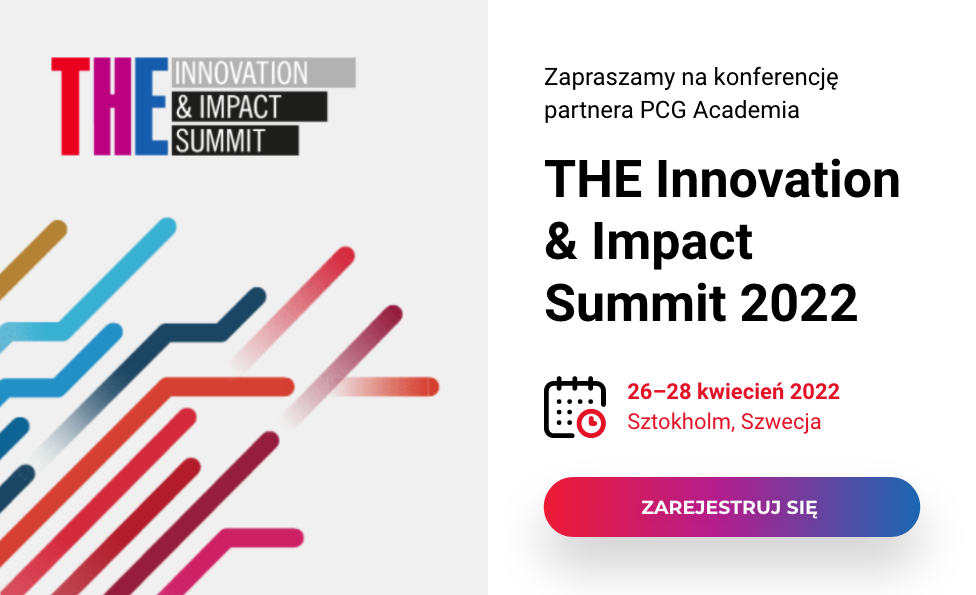 16 lutego 2022 3 min czytaniaW imieniu naszego partnera, Times Higher Education, mamy przyjemność zaprosić Państwa na jedyną w swoim rodzaju konferencję THE Innovation & Impact Summit 2022. Już 26-28 kwietnia w Sztokholmie spotkają się liderzy najlepszych i najbardziej ambitnych uniwersytetów za całego świata, decydenci, światowej klasy naukowcy i przedstawiciele kluczowych firm, aby omówić rolę szkolnictwa wyższego w rozwijaniu zrównoważonego ekosystemu innowacji.
