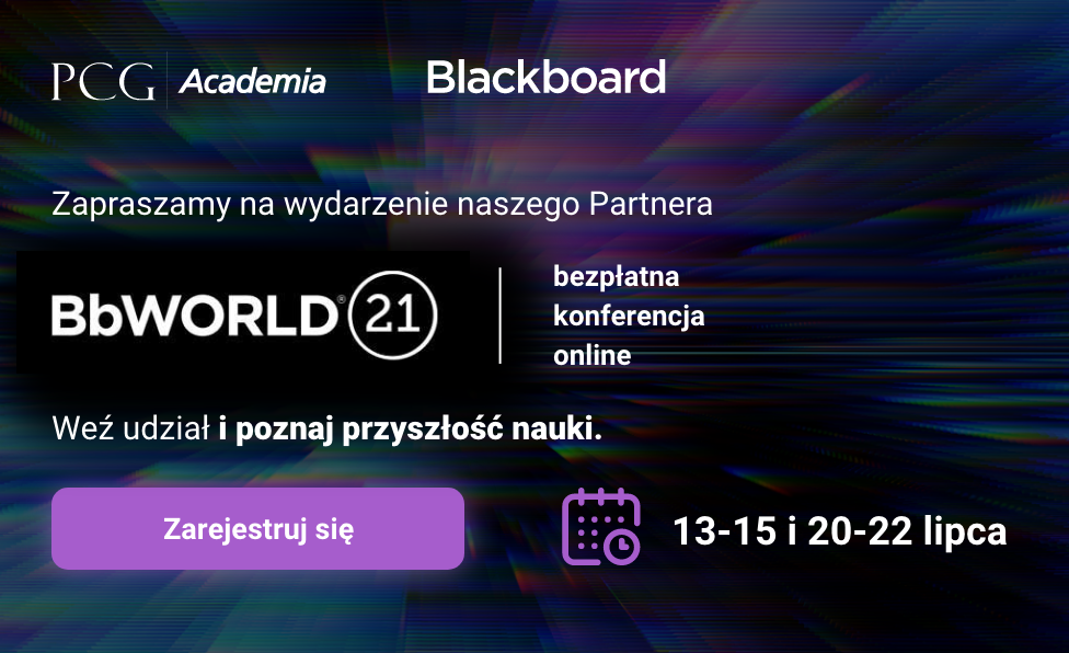 1 lipca 2021 4 min czytaniaW imieniu swoim oraz naszego partnera firmy Blackboard zapraszamy serdecznie kadrę zarządzającą uczelniami, administratorów e-learningu oraz dydaktyków na wyjątkowe wydarzenie online jakim jest BbWorld 2021. Ta coroczna konferencja Blackboarda skupia liderów edukacji z całego świata i jest świetną okazją do wymiany doświadczeń i najlepszych praktyk w zakresie nauczania zdalnego i transformacji cyfrowej uczelni. Jest też doskonałym forum do dyskusji o zmianach w edukacji i kierunków rozwoju szkolnictwa wyższego.